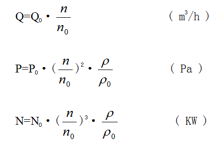 式中Q0 、P0 、N0、、為標(biāo)準(zhǔn)大氣壓和標(biāo)準(zhǔn)轉(zhuǎn)速n0時(shí)的流量、壓力、功率、氣體密度。Q 、P 、N、ρ、n為實(shí)際的流量、壓力、功率、氣體密度和轉(zhuǎn)速。
